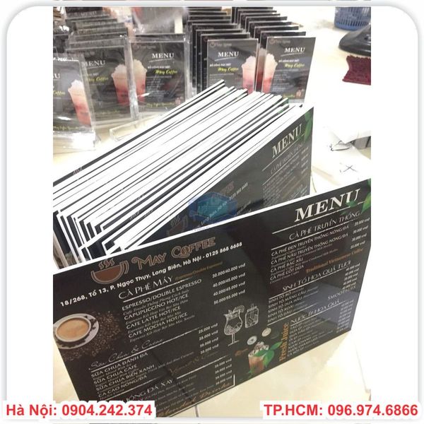In nhanh lấy ngay các mẫu menu giá rẻ tại Hà Nội,đủ kích thước,đa dạng mẫu mã.Công ty chúng tôi với hơn 15 năm kinh nghiệm trong sản xuất và in ấn các mẫu sản phẩm cùng các trang thiết bị máy móc công nghệ in hiện đại nhất tại Hà Nội là địa chỉ tin cậy và uy tín cho bạn.
