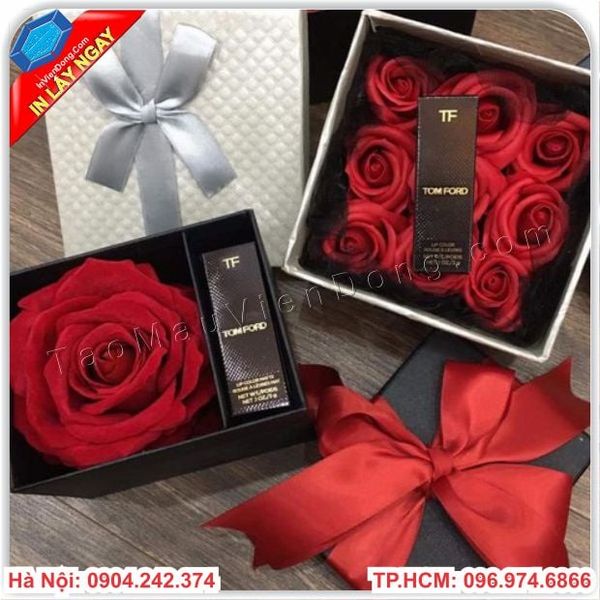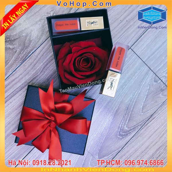 hộp quà đựng son hoa hồng, hộp quà hoa và son