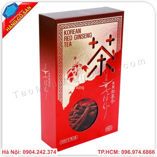 in ấn hộp giấy đựng nhân sâm được nhiều doanh nghiệp chú trọng thiết kế về mặt hình ảnh ra sao cho đẹp mắt và thay đổi mẫu mã thường xuyên. Đây là phần thể hiện ở bên ngoài hộp, mang dấu ấn thương hiệu cá nhân của doanh nghiệp, nó thể hiện đầy đủ thông tin doanh nghiệp, logo, slogan, và đặc biệt là thông tin sản phẩm nhân sâm bên trong để người tiêu dùng có thể định lượng được giá trị dinh dưỡng của sản phẩm