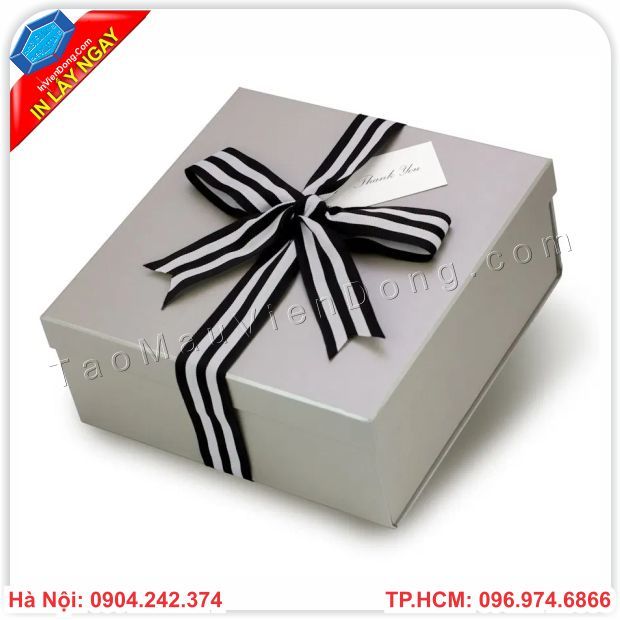 In nhanh Viễn Đông tại TP HCM chúng tôi có đủ nhiều loại mẫu mã hộp đựng quà, có đủ size, có đủ dáng hộp, hàng luôn có sẵn.