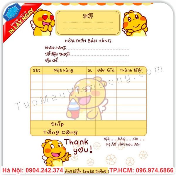 Hóa đơn là một loại tờ giấy do người bán hàng lập ra và thường dùng để ghi nhận thông tin bán hàng . Hiện nay In hóa đơn là một trong những hoạt động không thể thiếu của doanh nghiệp trong suốt quá trình kinh doanh, là một loại giấy tờ mang tính chất thống kê số liệu trong mỗi lần giao dịch buôn bán hàng hóa. Do tính chất vô cùng quan trọng như vậy nên việc in Hóa đơn phải thật cẩn thận tránh mọi nhầm lẫn sai xót. Xưởng in nhanh Viễn Đông với trên 10 năm kinh nghiệm Miễn phí thiết kế 100% sẽ giúp bạn hoàn thiện điều đó với chi phí cực kỳ hợp lý