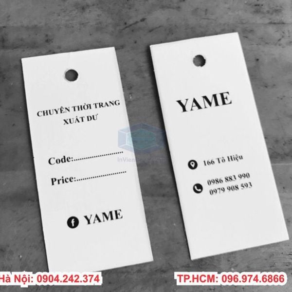 BÁO GIÁ IN MÁC QUẦN ÁO HÌNH CHỮ NHẬTGiấy C300 cán mờ, kích thước từ 4x9cm - 5x9cm | |||||