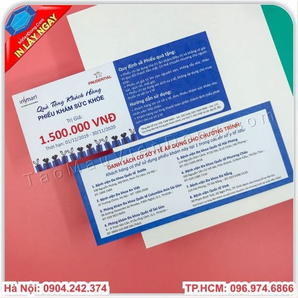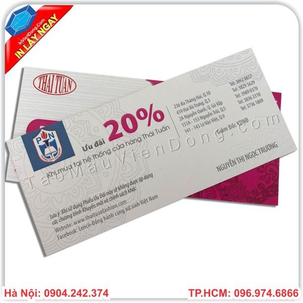 Bạn đang cần in voucher giảm giá để làm quà tặng hay khuyến mãi vậy thì xin mời bạn đến ngay xưởng In Viễn Đông in trực tiếp đảm bảo giá rẻ hơn so với thị trường. In offset sắc nét, chất lượng. Thiết kế miễn phí 100%. Chỉnh sửa maket không giới hạn. In test trước khi sản xuất.