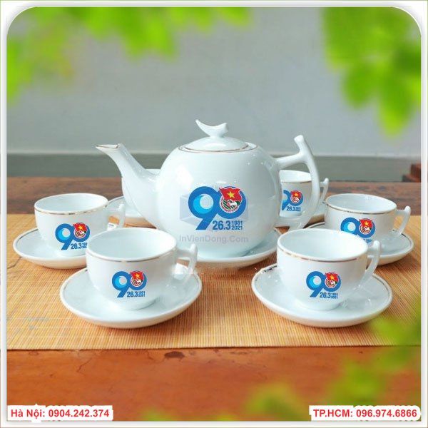 Bộ ấm chén in logo đoàn tại Hà Nội