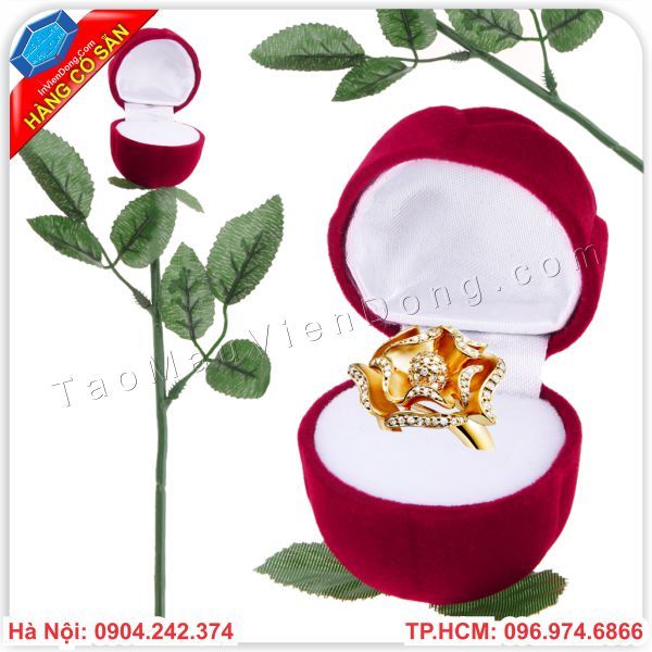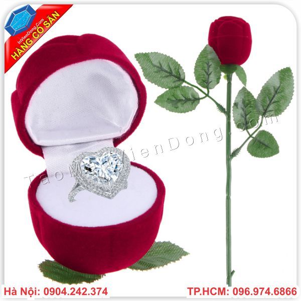 Bông hoa hồng nhung sờ mịn tay, cứng cáp, có cành lá gắn liền, nhìn thoáng qua thì không thể nào biết đó là một bông hoa hồng giả. Và một phần quan trọng hơn nữa, là Bông hoa hồng này có thể mở được, bạn có thể để những món quà nhỏ bên trong tạo nên phần bất ngờ khá lớn.