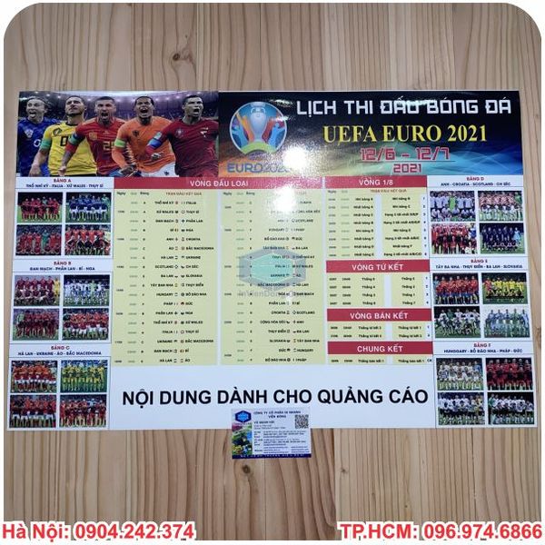 Euro 2021 Lịch thi đấu chính xác chi tiết cụ thể In trên giấy bìa cứng cao cấp có dán băng dính 2 mặt phía sau để dán lên bảng hay tường tiện lợi.