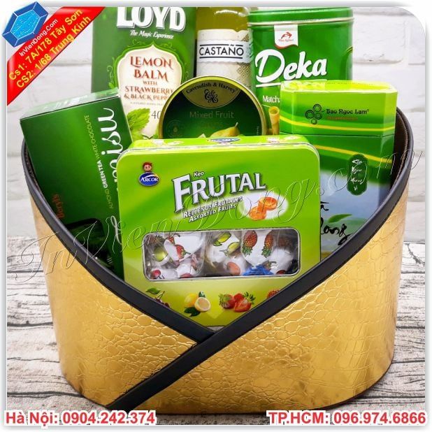 | Quy cách | Giỏ đựng quà tết cao cấp, hộp dây móc có khóa nam châm từ tính có cắt bóng kính mạ nhũ vàng hay nhũ bạc thúc nổi 3D hoa sen, hoa mai,cành đào ... | |