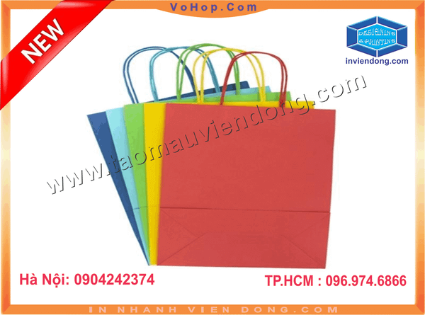 In càng nhiều đơn giá càng rẻ. Công ty cung cấp Túi Giấy, túi giấy chất lượng, túi giấy cao cấp, Túi Giấy Kraft - sản xuất túi giấy tại tp Hồ Chí Minh. Công ty chúng tôi chuyên sản xuất và bán túi giấy có sẵn đẹp giá thành phải chăng. Túi giấy có nhiều màu sắc, nhiều kích thước tha hồ lựa chọn. Ngoài ra có thể thiết kế riêng biệt đẹp chất lượng và có thể làm túi giấy theo nhu cầu, In logo, thiết kế túi độc quyền.