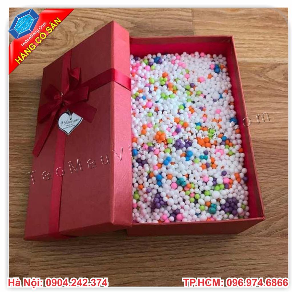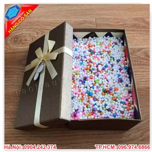 Hộp quà đẹp khi có đầy đủ phụ kiện và vừa vặn với món quà. Các loại phụ kiện nên có như khay dưỡng để quà, nơ, giấy gói quà hay túi đựng quà. Đặc biệt khi đổ vào hộp quà những hạt xốp đủ màu sắc sinh động sẽ làm cho hộp quà vô cùng dễ thương. Hộp quà tặng chứa đầy những hạt mút xốp đủ màu sắc che phủ các món quà tặng bên trong hộp, nhằm tạo sự bất ngờ và thú vị cho người nhận quà.