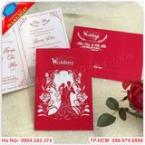 Thiệp đỏ hoa hồng với công nghệ in hiện đại mang cho tấm thiệp cưới dáng vẻ càng thêm sang trọng.