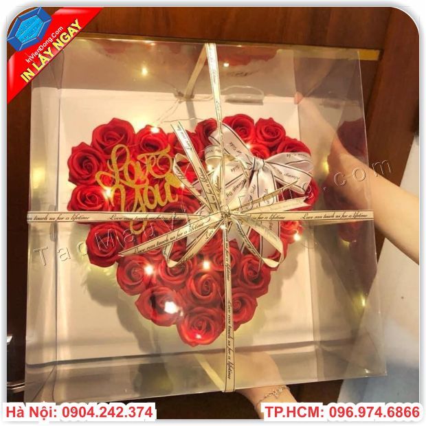Hộp Quà Trái Tim LOVE Bông Hồng Sáp Có Đèn Led