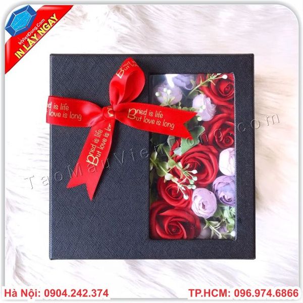 | Quy cách | Hộp đựng hoa cao cấp âm dương , hộp dây móc có khóa nam châm từ tính có cắt bóng kính mạ nhũ vàng hay nhũ bạc thúc nổi 3D hoa sen, hoa mai,cành đào ... | |