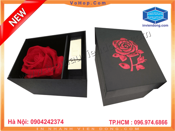 hộp hoa chất liệu cao cấp in logo miễn phí chỉ có tại IN NHANH VIỄN ĐÔNG.