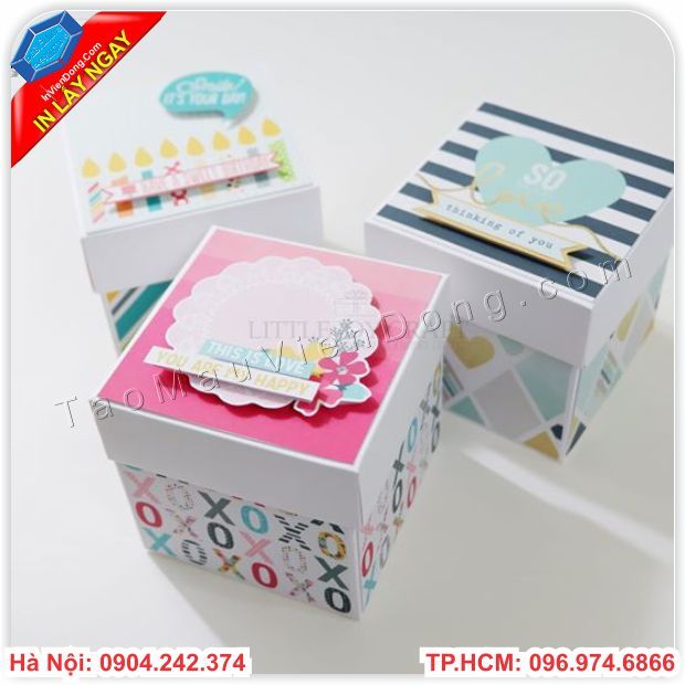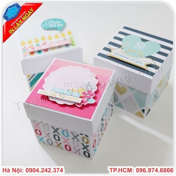 Sinh nhật luôn là gì được yêu quý nhất năm, đặc biệt là các em bé. Vì thế, một món quà sinh nhật ưng ý là điều tuyệt vời nhất đối với các bé. Tuy nhiên, để tạo được sự thu hút, nổi bật cho món quà, thì ngày đầu tiên chiếc hộp quà bên ngoài cũng rất quan trọng. Các em sẽ cảm thấy hào hứng hơn rất nhiều nếu hộp quà bên ngoài có thiết kế bắt mắt, thu hút. Thay vì những hộp quà bình thường, những chiếc hộp quà có in hình mà các em thích, hay có màu sắc, họa tiết bắt mắt đảm bảo sẽ làm cho dịp sinh nhật của bé càng thêm thú vị. Với mong muốn làm thỏa mãn nhu cầu khách hàng và đem lại niềm vui, hạnh phúc cho ngày sinh nhật của các bé, In nhanh Viễn Đông là cơ sở chuyên in ấn và sản xuất các loại hộp quà sinh nhật dành cho em bé. Chúng tôi cũng nhận thiết kế và sản xuất riêng theo yêu cầu của khách hàng. Ngoài ra chúng tôi còn có sẵn hộp quà dành cho bé với kích thước, mẫu mã đa dạng.