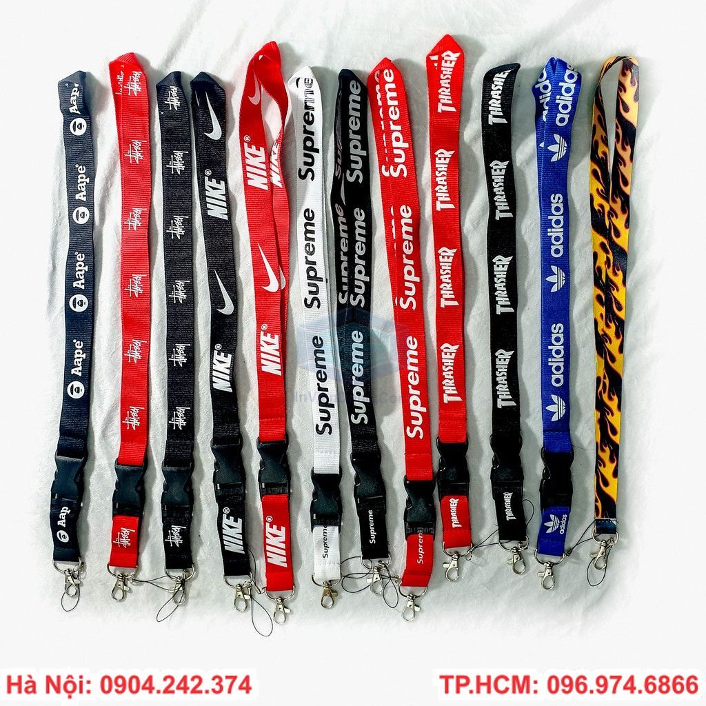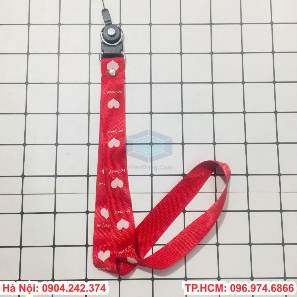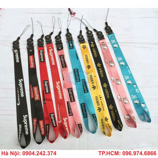 Chất liệu dây lụa mềm tay, hoặc dây vải, guy băng... in ấn 1 mặt hoặc 2 mặt 1 màu. Bằng cách in lưới hoặc in chuyển nhiệt, cao su non. Tùy theo mức giá và yêu cầu khắt khe của các bạn. Bản dây rộng bao gồm có 1cm, 1,5cm, 2cm.... chiều dài dây 45cm vòng. Có đủ loại móc sắt, móc nhựa dẻo hoặc nhựa cứng....