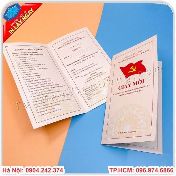 Dịch Vụ In Giấy Mời Cho Đại Hội Chi Bộ Đảng Các Cấp Lấy Ngay. Có Sẵn Nhiều Mẫu Chuẩn Đẹp Miễn Phí Thiết Kế Theo Yêu Cầu