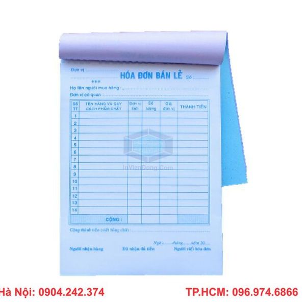 Đến với chúng tôi bạn sẽ được thiết kế miễn phí cho dù là chỉ ột sản phẩm. Dưới đây là một số mẫu hóa đơn bán lẻ do công ty chúng tôi thiết kế và sản xuất. Nếu bạn cân đặt mua hóa đơn cho cưa hàng hay công ty của mình thì hãy nhanh tay liên hệ với chúng tôi.