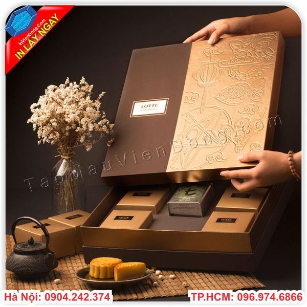 Công Ty In Viễn Đông luôn đồng hành cùng quý khách hộp đựng bánh trung thu cao cấp thường là loại hộp có chất lượng và độ tinh xảo cao, ngoài ra hộp còn phải đảm bảo chất lượng vệ sinh an toàn thực phẩm