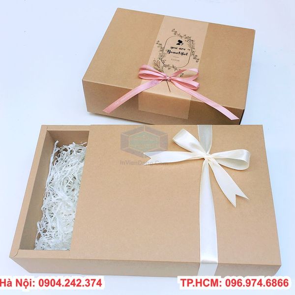 Hộp đựng quà tất vả mọi người thường được sử dụng trong rất nhiều dịp khác nhau. Thông thường chúng sẽ được sử dụng để đựng quà tặng vào những dịp lớn như sinh nhật, những ngày kỷ niệmvà một số ngày khác..... Công Ty chúng tôi đã cho thiết kế và sản xuất rất nhiều hộp đựng quà với mẫu mã và kích thước khác nhau nhằm đáp ứng được nhu cầu của thị trường. Nếu bạn muốn mua một hay nhiều sản phẩm hộp đựng quà thì hãy liên hệ với chúng tôi.