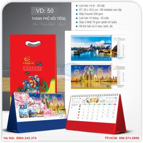 Kích thước lịch để bàn: 20 x 21cm, 22 x 18cm..…