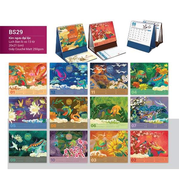 Với kích thước nhỏ gọn được in trên chất liệu giấy đẹp lịch để bàn là lựa chọn hàng đầu cho nhiều doanh nghiệp bởi sự sang trọng và tiện lợi. Lịch để bàn bao gồm lịch chữ A và lịch chữ M