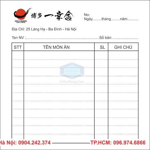 IN ORDER NHÀ HÀNG - CAFE - 0 VND