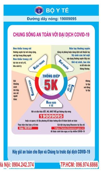 Hiện nay thì dịch bệnh Covid-19 vẫn đang diễn biến phức tạp, cùng với những con số người bị nhiễm bệnh và tử vong trên toàn cầu ngày một tăng. Và để chủ động phòng chống dịch Covid-19 hiệu quả hơn thì bộ y tế đã đưa ra một giải pháp đó chính là thông điệp 5K. Vậy thông điệp 5K là gì? Thông điệp 5K chính là một thông điệp bao gồm có 5 khẩu hiệu bao gồm: khẩu trang, khoảng cách, khử khuẩn, khai báo y tế, không tập trung. Đây chính là một trong những thông điệp mà bộ y tế muốn mọi người dân phải thực hiện theo đúng yêu cầu để tránh dịch bệnh phát tán lan rộng.