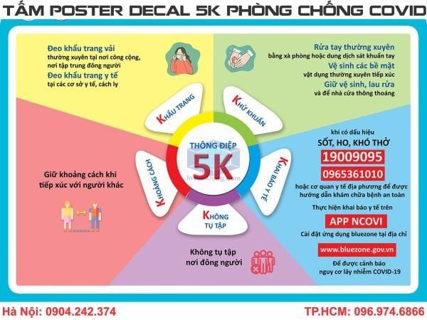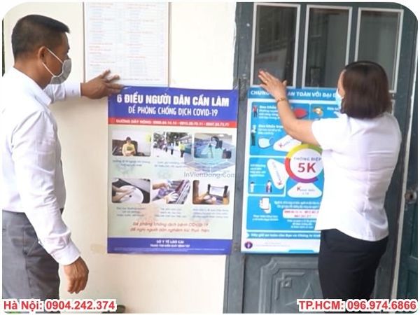 Để góp phần vào công cuộc phòng chống dịch thì In Nhanh Viễn Đông chúng tôi đã cho in bộ poster tuyên truyền 5K covid. Tại đây chúng tôi có đội ngũ nhân viên thiết kế chuyên nghiệp và được sản xuất trên dây truyền công nghệ hiện đại bằng máy in offset công nghiệp C7000 (chỉ có duy nhất tại Hà Nội) 100tờ/1phút. Ngoài ra thì chất liệu sẽ được dùng bằng giấy decal và kích thước sản phẩm sẽ được thiết kế theo yêu cầu. In ấn: nhiều màu 1 hoặc 2 mặt, (thường in 2 màu,4 màu, 2 mặt). Gia công Thành phẩm: cắt xén thành phẩm, cán mờ, cán bóng.