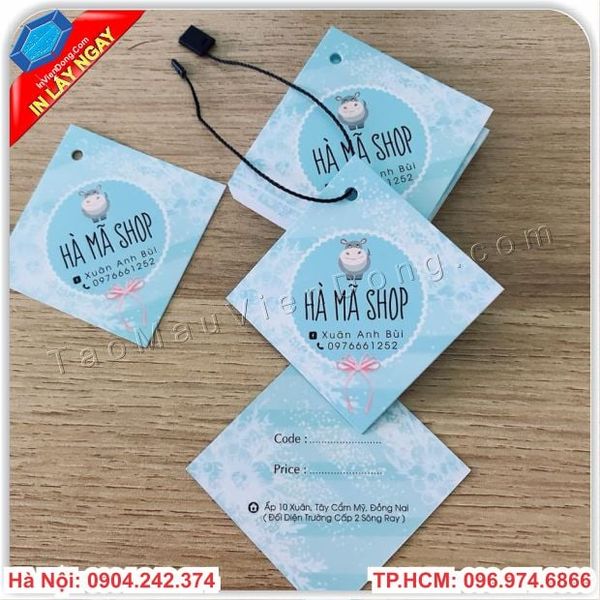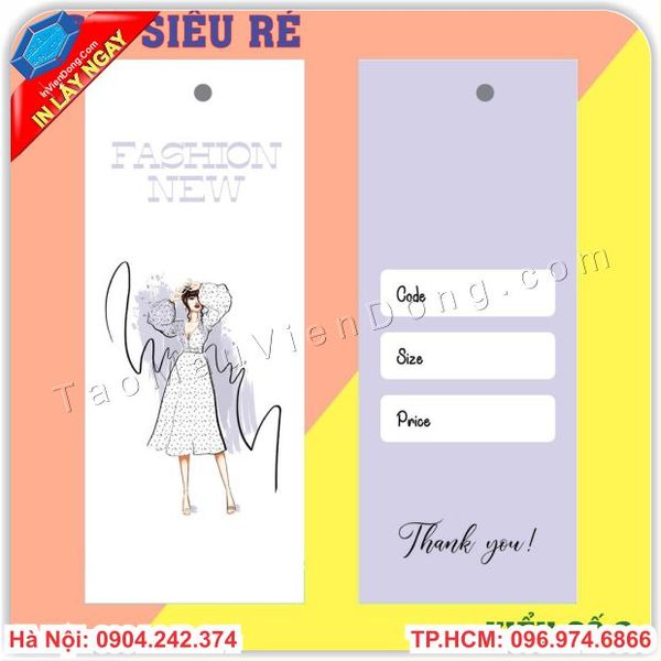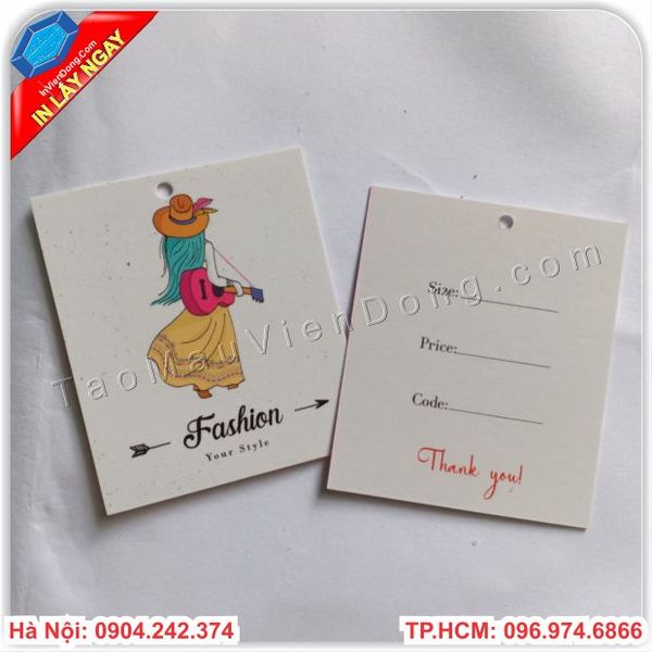 In tag treo sản phẩm là hình thức giới thiệu, mô tả sản phẩm một cách gián tiếp thông qua tag treo. Giúp khách hàng dễ nhận biết được thương hiệu của mình , thiết kế độc quyền tránh các doanh nghiệp khác nhái hàng . Những chiếc Tag quần áo vô cùng bé nhỏ nhưng mang lại hiệu quả rất cao . Hãy để Cty In nhanh Viễn Đông chúng tôi thiết kế cho bạn những mẫu Tag quần áo độc đáo nhất nhé !!!