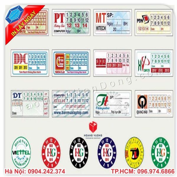 - In tem bảo hành theo yêu cầu: Chúng tôi có thể in tem bảo hành theo mọi kích thước, hình dạng, màu sắc và nội dung yêu cầu của khách hàng.