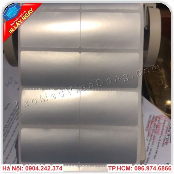 Tem decal bạc là một loại tem được sản xuất từ giấy bạc , tem decal có tính chống chịu nước và nhiệt dộ môi trường cao .In tem bạc là một hình thức in tem decal đặc biệt được phủ một lớp kim loại bạc lên trên bề mặt và dùng để dán lên các sản phẩm trước khi đưa ra thị trường. Trước khi in tem bạc được cán một lớp màng trong mỏng, nên tem sẽ hạn chế bị trầy xước và thấm nước . Bởi được phủ một lớp màng mờ thế nên có thể thoải mái cọ rửa mà không lo tem bạc bị hỏng.Vì có tính chất bền nên tem bạc thường được sử dụng trong các lĩnh vực điện tử, điện lạnh hay các sản phẩm thường xuyên tiếp xúc trực tiếp với môi trường ngoài trời .