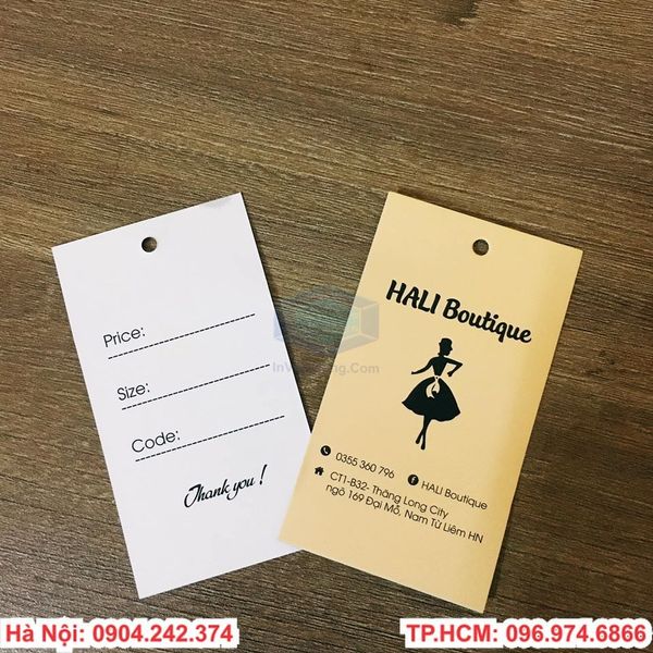 BÁO GIÁ IN MÁC QUẦN ÁO HÌNH CHỮ NHẬTGiấy C300 cán mờ, kích thước từ 4x9cm - 5x9cm | ||||