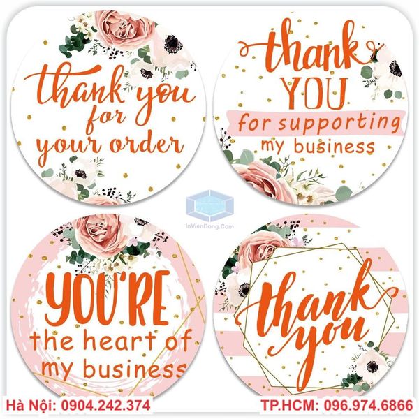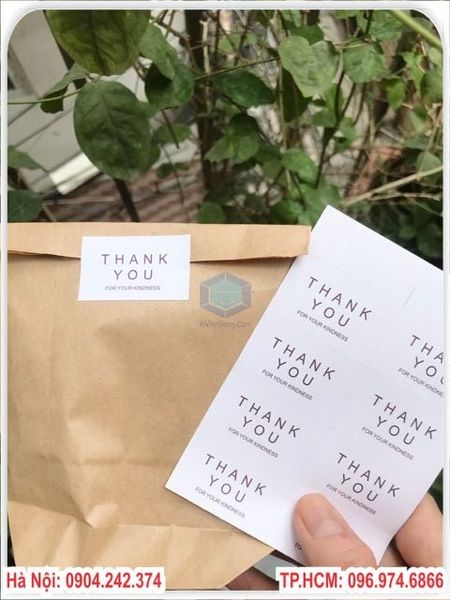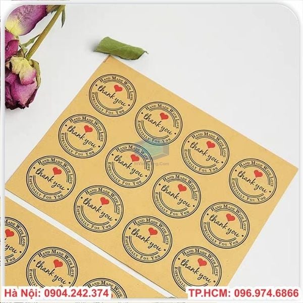 Các sản phẩm handmade của bạn sẽ trở nên thật ý nghĩa và chuyên nghiệp hơn khi đi kèm các tem dán sticker cảm ơn là lời tri ân đến khách hàng.Các nhãn dán từ decal trong đến chất liệu giấy dán có thể in nhanh lấy ngay theo yêu cầu của khách hàng