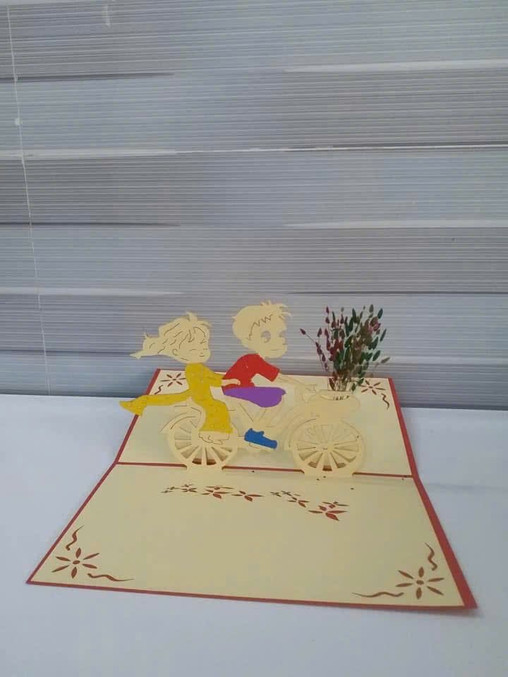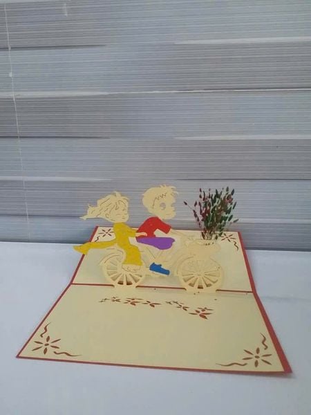 Mẫu 3: Đôi Bạn Trẻ Xe Đạp Tuổi Thơ: Nét cắt laser khắc họa hình ảnh ngộ nghĩnh, đáng yêu của đôi bạn nhỏ đèo nhau trên chiếc xe đạp, mang lại cảm giác hoài niệm, hồn nhiên và trong trẻo.
