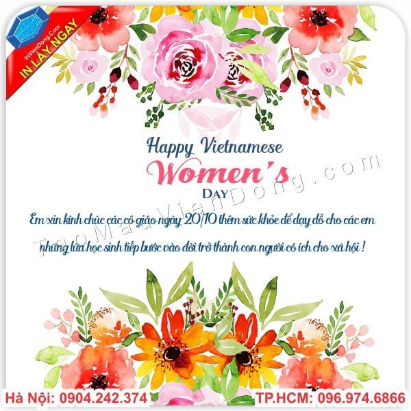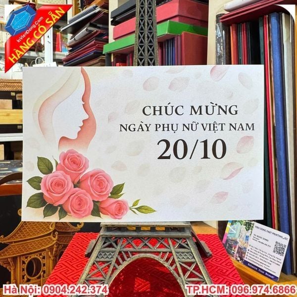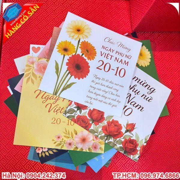 Những mẫu thiệp chúc mừng ngày 20-10 đẹp nhất, Cùng với hoa và quà tặng chúc mừng 20/10, những tấm thiệp nhỏ xinh được thiết kế và in nhanh tại Tạo Mẫu Viễn Đông với lời chúc 20/10 Hay Nhất, chứa đựng những hình ảnh 20/10 dành tặng tất cả phụ nữ Việt Nam