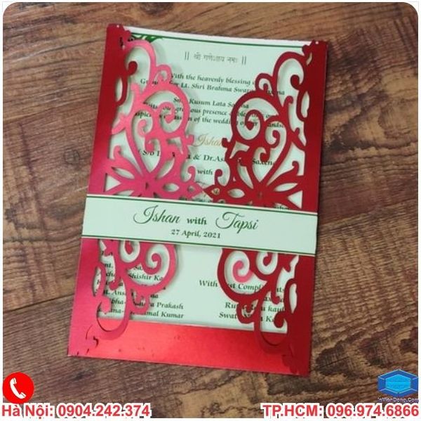 - Thời gian in thiệp mời, thiệp cưới nhanh chóng, đáp ứng yêu cầu của mọi khách hàng, giao hàng nhanh đúng hẹn đúng mẫu mã yêu cầu.