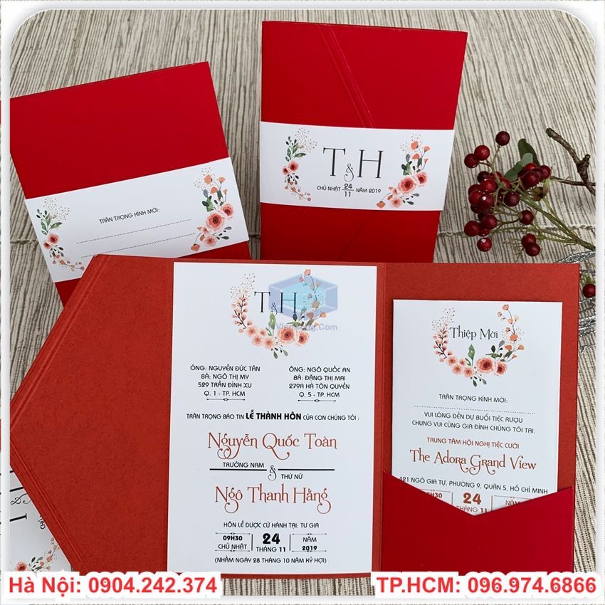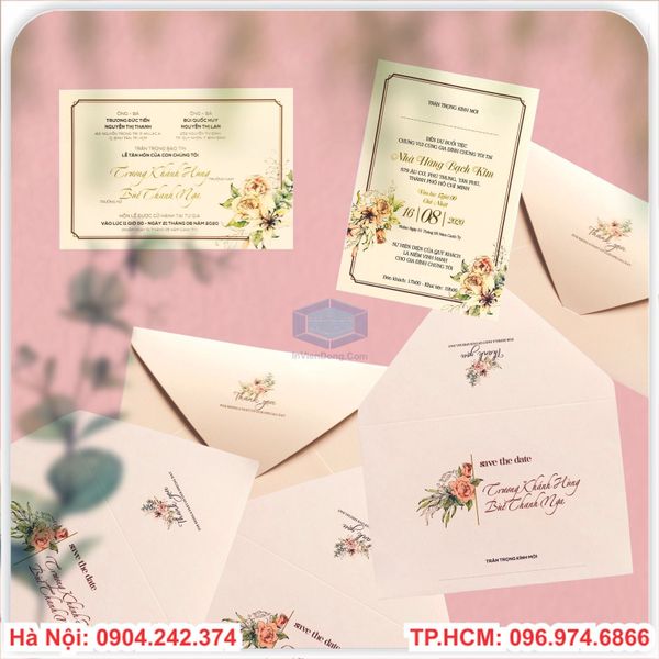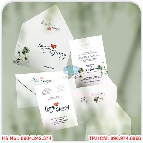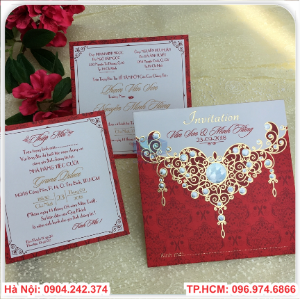 Chúng ta luôn muốn ngày trọng đại nhất đời mình được hoàn hảo và đáng nhớ.Mọi công việc từ khâu chuẩn bị đến lúc bắt đầu đều phải tươm tất,nhất là khâu mời cưới.Tấm thiệp là lời mời trang trọng tới họ hàng và bạn bè tới chung vui và dự bữa cơm thân mật với gia đình bạn trong ngày vui
