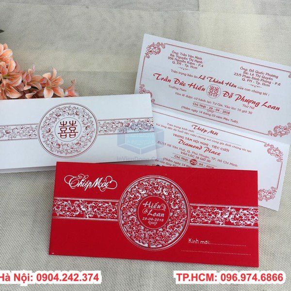 Xưởng Viễn Đông chuyên in thiệp cưới tại xưởng, giá gốc, in nhanh giao hàng nhanh. nhiều mẫu mã để lựa chọn. in thiệp cưới giá rẻ nhất Hà Nội, in nhanh giao hàng nhanh, in ấn mọi thứ trên giấy.Ở công ty Viễn Đông còn có sẵn những tấm thiệp cưới có sẵn kiểu dáng truyền thống với tông đỏ chủ đạo nhưng qua công nghệ ép nhũ cùng thiết kế chìm nổi với những họa tiết phức tạp khiến cho những khách hàng dù khó tính mấy cũng cảm thấy hài lòng.