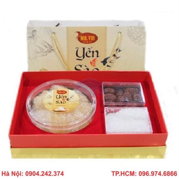 Yến sào là sản phẩm cao cấp do xuất hiện với số lượng hiếm hoi cùng sở hữu nhiều công dụng tốt cho sức khoẻ nên có giá thành khá đắt đỏ. Chính từ những điều đó nên từ lâu yến sào đã là món quà tặng cho người thân, cấp trên, đối tác,.. được nhiều người lựa chọn. Để sản phẩm của mình có thể trở nên nổi bật giữa hằng hà sa số các loại mặt hàng cùng loại trên thị trường thì nhiều doanh nghiệp đã ra quyết định đúng đắn khi sử dụng những loại hộp đựng yến cao cấp với những thiết kế đẹp mắt nhằm mang đến vẻ ngoài sang trọng, đẳng cấp, nhằm tăng sức cạch trang cho sản phẩm. Đồng thời khi sử dụng những loại túi hộp bắt mắt thì chúng góp thêm phần thuận tiện cho việc biếu, tặng của khách hàng trở nên dễ dàng và có thành ý hơn.