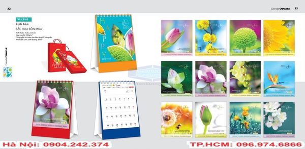 | Quy cách | Lịch để bàn đóng gáy lò so 13 tờ in 2 mặt có mạ nhũ vàng hay nhũ bạc cành đào ... | |