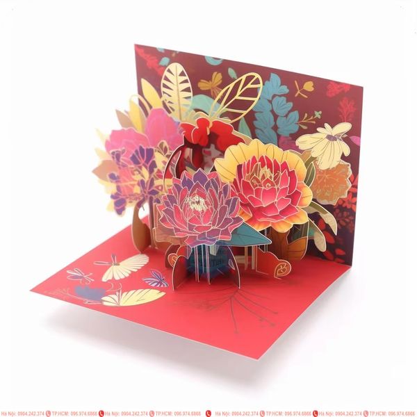- Thiệp 3D dạng pop-up: Khi mở thiệp, các chi tiết 3D bên trong sẽ tự động bật ra tạo hiệu ứng sinh động.