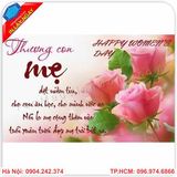 Ngày 20/10 sắp tới bạn đã chuẩn bị được món quà tặng cho mẹ, vợ hay bạn gái mình chưa? Đối với đấng mày râu thì những ngày này chính là cơ hội để bạn thể hiện tình yêu thương của mình đối với những người phụ nữ xung quanh mình, đôi khi chỉ là 1 câu nói yêu thương, 1 bông hồng hay 1 tấm thiệp nhỏ nhưng nó sẽ chưa đựng nhiều ý nghĩa. Bên cạnh những món quà mang ý nghĩa vật chất thì món quà tinh thần như lời chúc trong 1 tấm thiệp sẽ có ý nghĩa rất quan trọng.