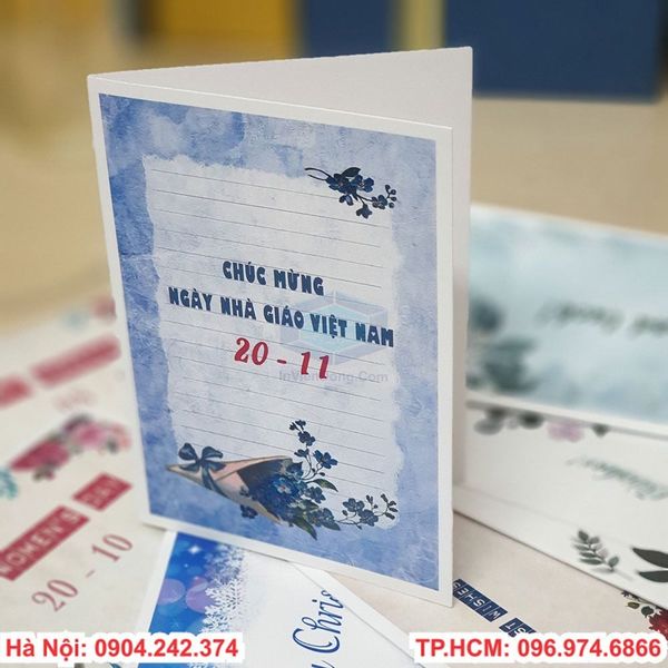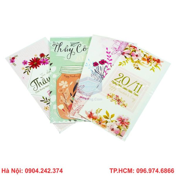 Công Ty In Viễn Đông cùng trung tay vời các em học sinh thể hiện nhhững tình cảm đằm thắm nhất đến với quý thầy cô. Thông qua những tấm thiệp 20/11 xinh sắn. Hiện nay chúng tôi luôn có sẵn hàng trăm mẫu thiệp với đầy đủ kiểu dáng để bạn lựa chọn. Đồng thời, hỗ trợ bạn thiết kế thiệp dành riêng cho mình nếu bạn muốn thiể hiện được tình cảm đặt biệt của mình với thầy cô.