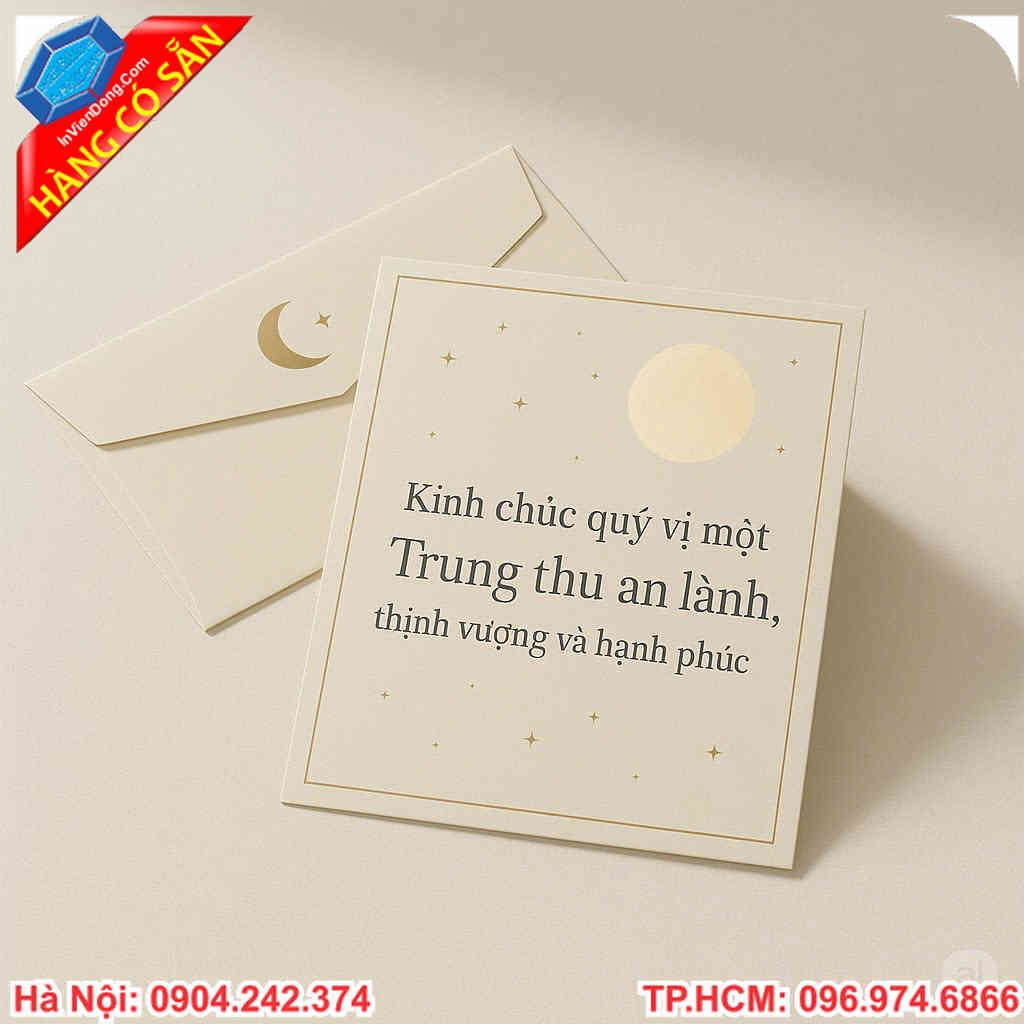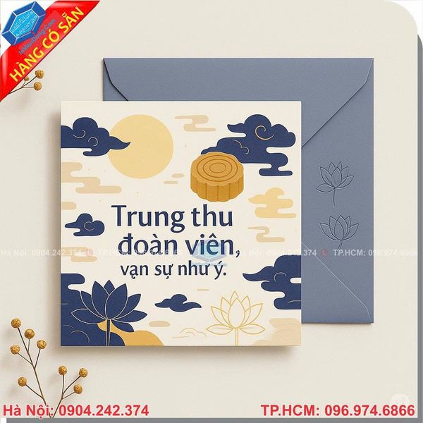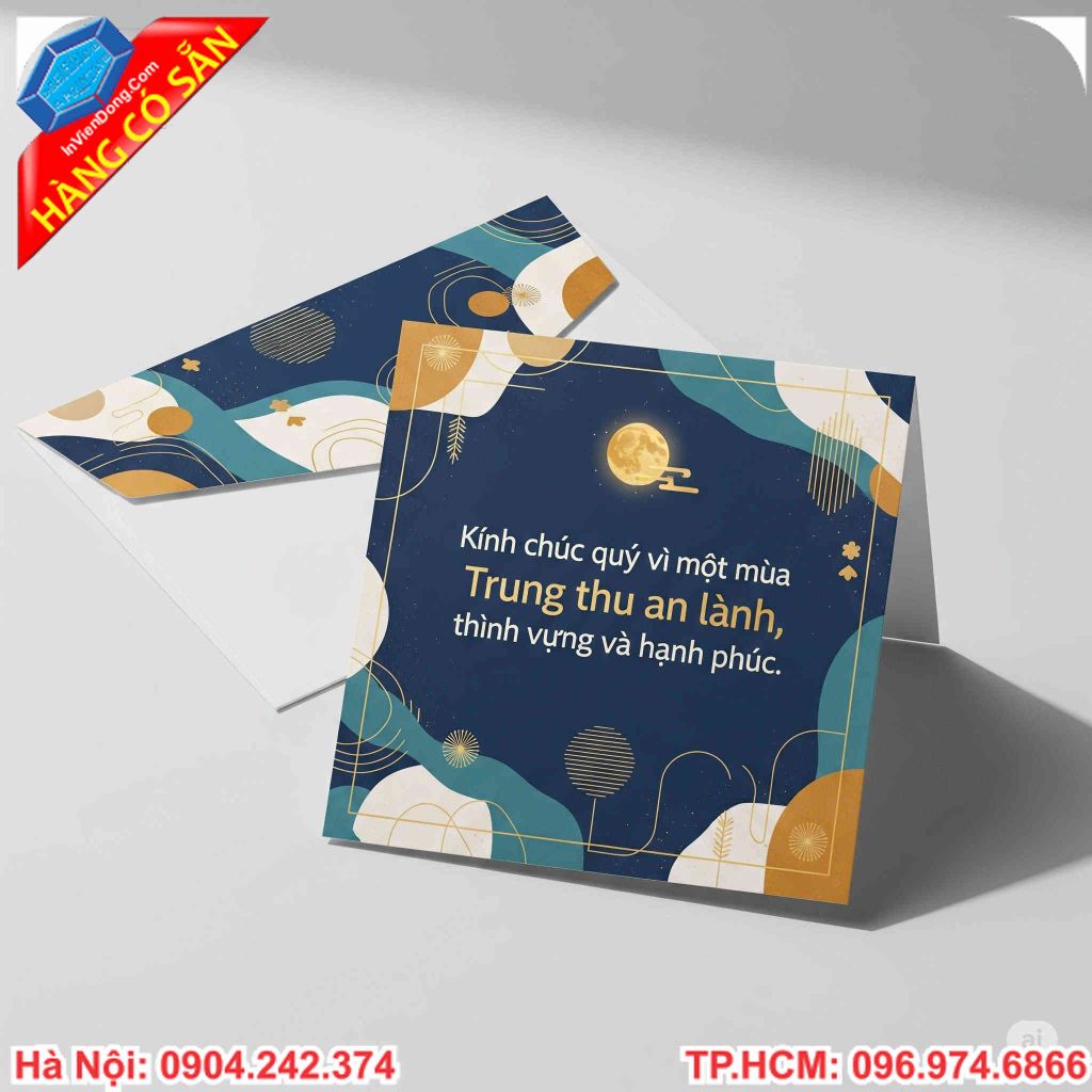 Bạn mong muốn tìm kiếm một món quà Trung thu thật đặc biệt? Hãy để chúng tôi đồng hành cùng bạn. Chúng tôi sẽ giúp bạn tạo ra những chiếc thiệp Trung thu độc đáo, thể hiện trọn vẹn tình cảm của bạn. Từ khâu thiết kế đến in ấn, chúng tôi cam kết mang đến cho bạn một trải nghiệm dịch vụ hoàn hảo