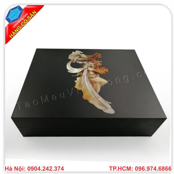 Với chất liệu bìa carton cứng cao cấp từ 0.6 đến 3 mm tùy khách lựa chọn. Hộp bìa cứng cao cấp vừa để làm hộp chứa đựng sản phẩm vừa để bảo quản và ngoài ra dùng luôn cho vận chuyển tránh hư hỏng sản phẩm, bạn có thể làm thêm khay dưỡng định hình bằng mút xốp để cho vừa vặn sản phẩm bên trong.