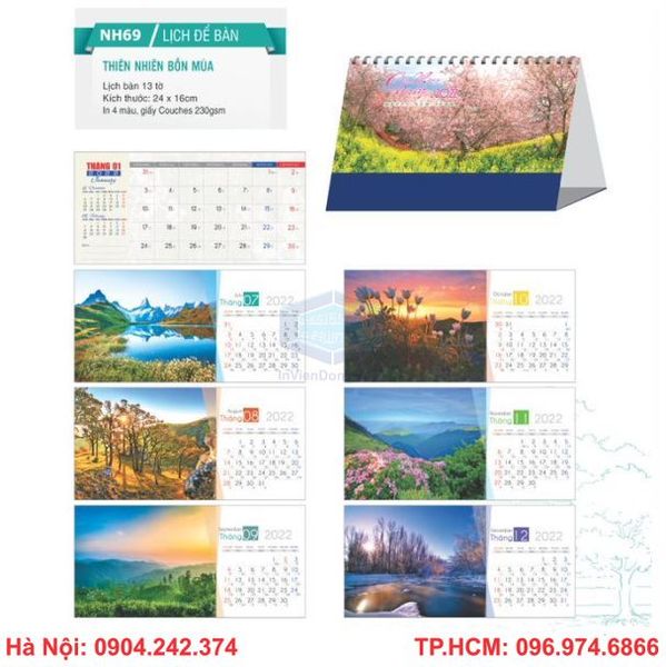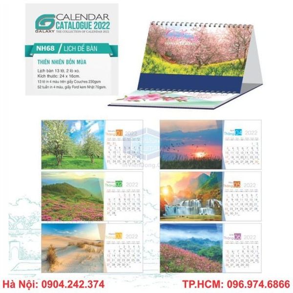 Mẫu lịch để bàn tết thiên nhiên bốn mùa có sẵn