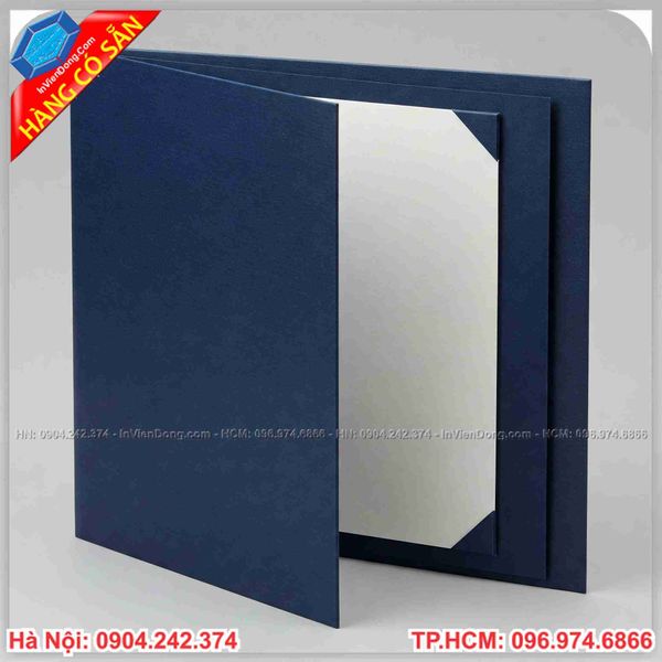 - Kiểu dáng: Thiết kế dạng bìa đôi, gập lại gọn gàng, bên trong có các góc giữ giấy chắc chắn, giúp cố định và bảo vệ tấm bằng tốt nhất.