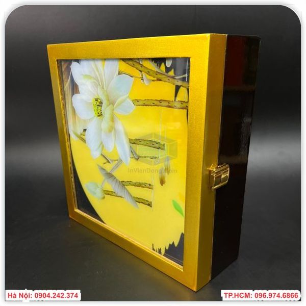 - Ngoài ra hộp đựng bánh trung thu còn được sản xuất từ một số những chất liệu cao cấp khác như: gỗ, kim loại,...
