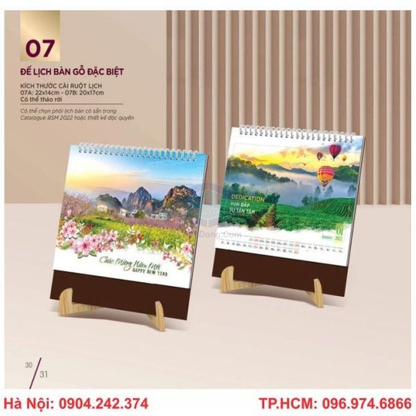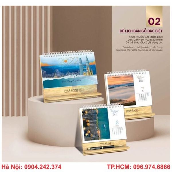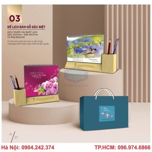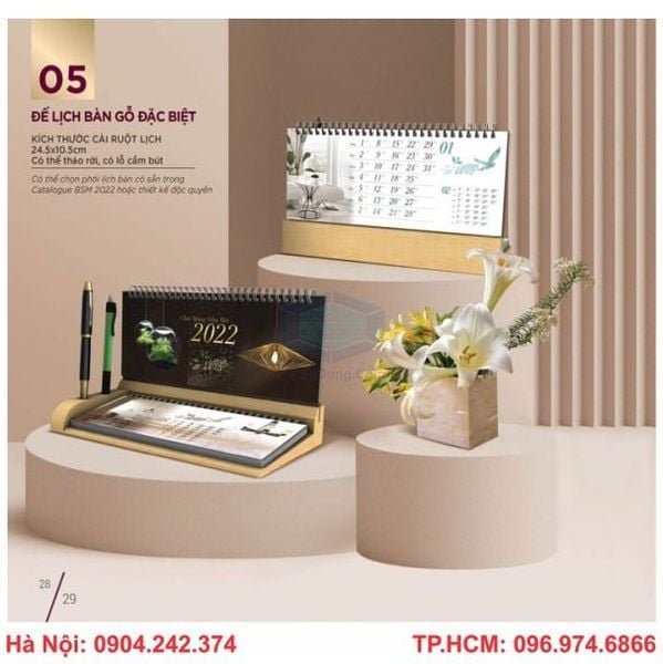 Mẫu lịch để bàn đế gỗ tại Hà Nội